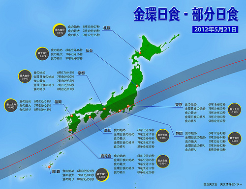 2012年5月21日(月)朝は、全国で金環日食・部分日食を観ることができるそうだ。