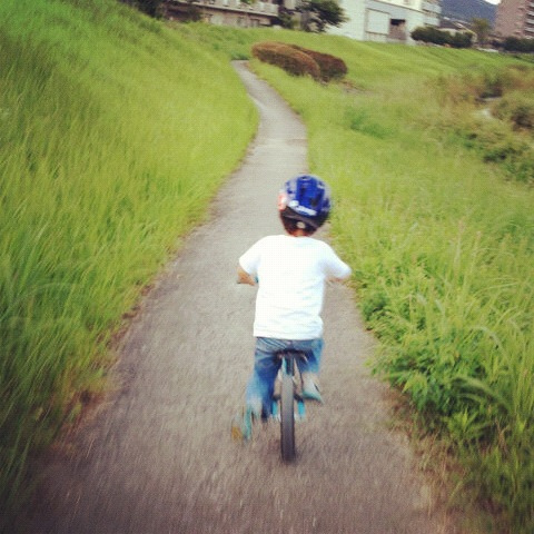 ストライダーカップ広島ラウンドまであと2日!次男の出場する3才クラスは予選、準決勝までが芝のコース、決勝戦が本格BMXのダートコースとなる。普段はストライダーの走行ができない土師ダムのBMXコースはかなり高低差があって、ダートが苦手とな次男にはきつい。というか怖がってスピードを出さない。今回は3才最後のストライダーカップで地元開催なので、なんとか決勝まで進んでくれることを願っているので、ダートコースに少しでも慣れさせておきたい。ということで、かさおか太陽の広場へ行ってきたらしい。やる気だね。